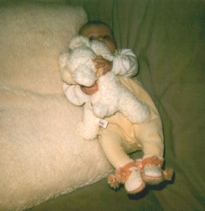 Heute (10.01.2000) ist mal wieder Badetag, das Waschbecken wird langsam zu klein für Alexa. Aber bisher ging das immer ganz gut.