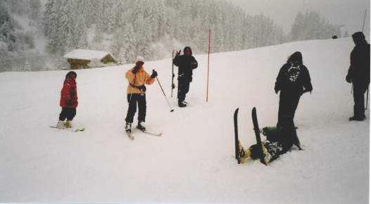 An einem Tag war der Schneefall und Wind so stark, daß wir mit gar nicht aus der Gondel ausgestiegen sind. Statt dessen sind wir im Tal am Hinterangerlift ein bischen Snowboard gefahren. Und danach haben wir eine schöne Schneewanderung gemacht.