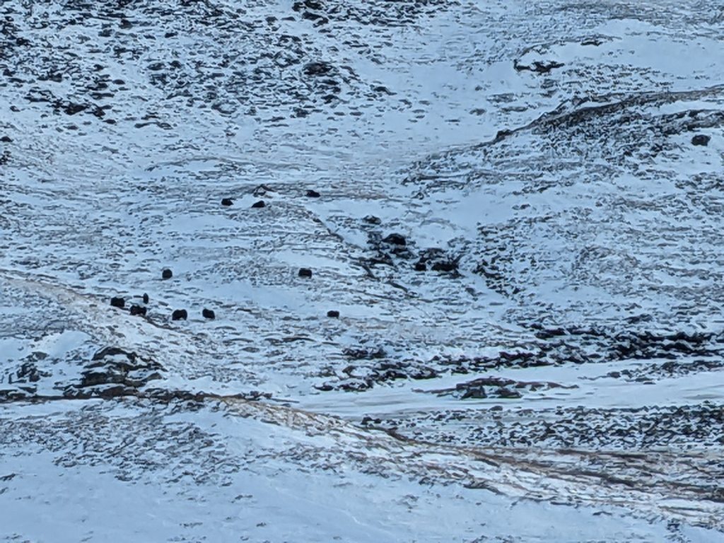 Unterwegs haben wir auch Muskox – Moschusochse gesehen.
