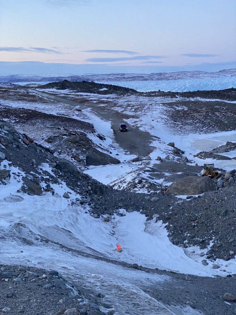Die Schotterstraße führt von Kangerlussuaq zum Inlandeis. Sie sollte verwendet werden, um die Fahrzeuge unter extremen Bedingungen zu testen. Die Schotterstraße wurde jedoch lange Zeit nicht für diesen Zweck genutzt. Jetzt wird Sie für Ausflüge mit Geländewagen genutzt.
