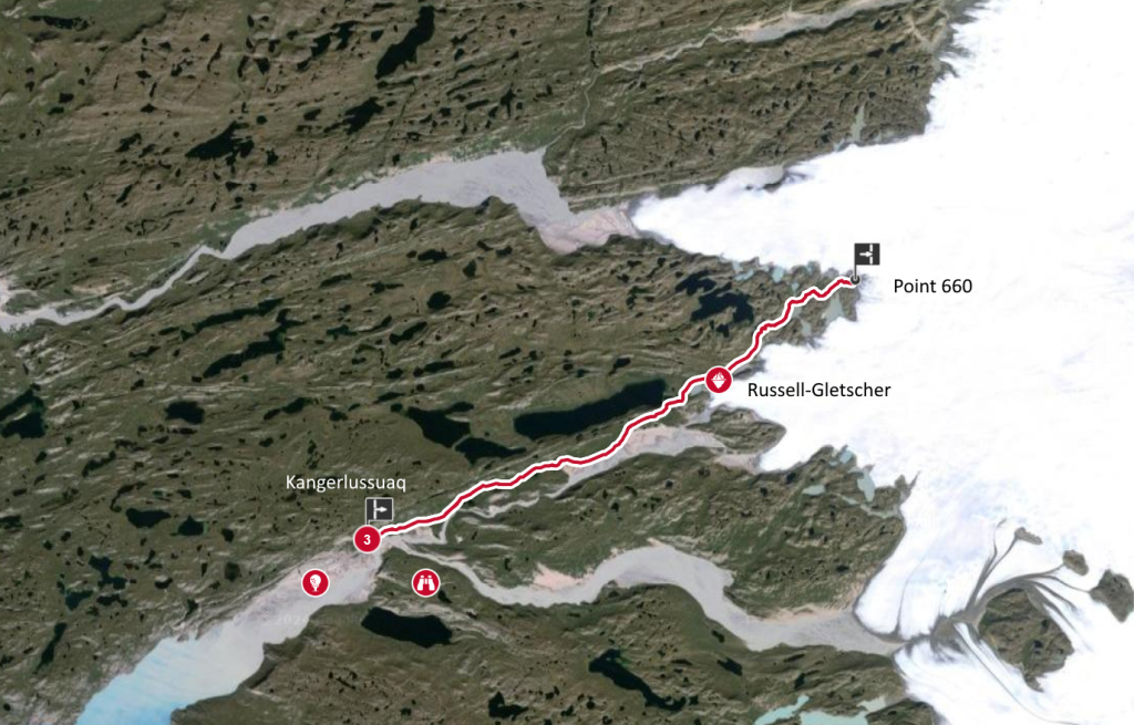 Er liegt rund 35 km von Kangerlussuaq entfernt.