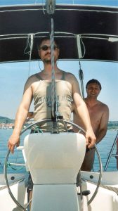 Nach intensivem Bad gibt es noch ein Vesper. Dann geht es zum Segeln. In der Zwischenzeit ist eine leichte Brise aufgekommen und wir segeln nach Konstanz. Abendessen gibt es direkt an der Pier am Hafen. Dann noch einen kleinen Abendspaziergang durch Städtle, natürlich alles in kurzen Hosen. Ein Eis in der Tüte passt auch noch rein.