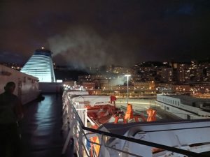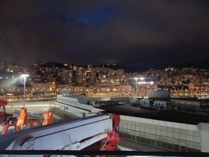 Wir kommen rechtzeitig in Genua am Hafen an, nur dumm, dass die Bar am Hafen geschlossen hat und der Supermarkt auch gerade schließt, sodass wir dann doch unverrichteter Dinge in den Hafen fahren wo wir schnell auf die Fähre können.