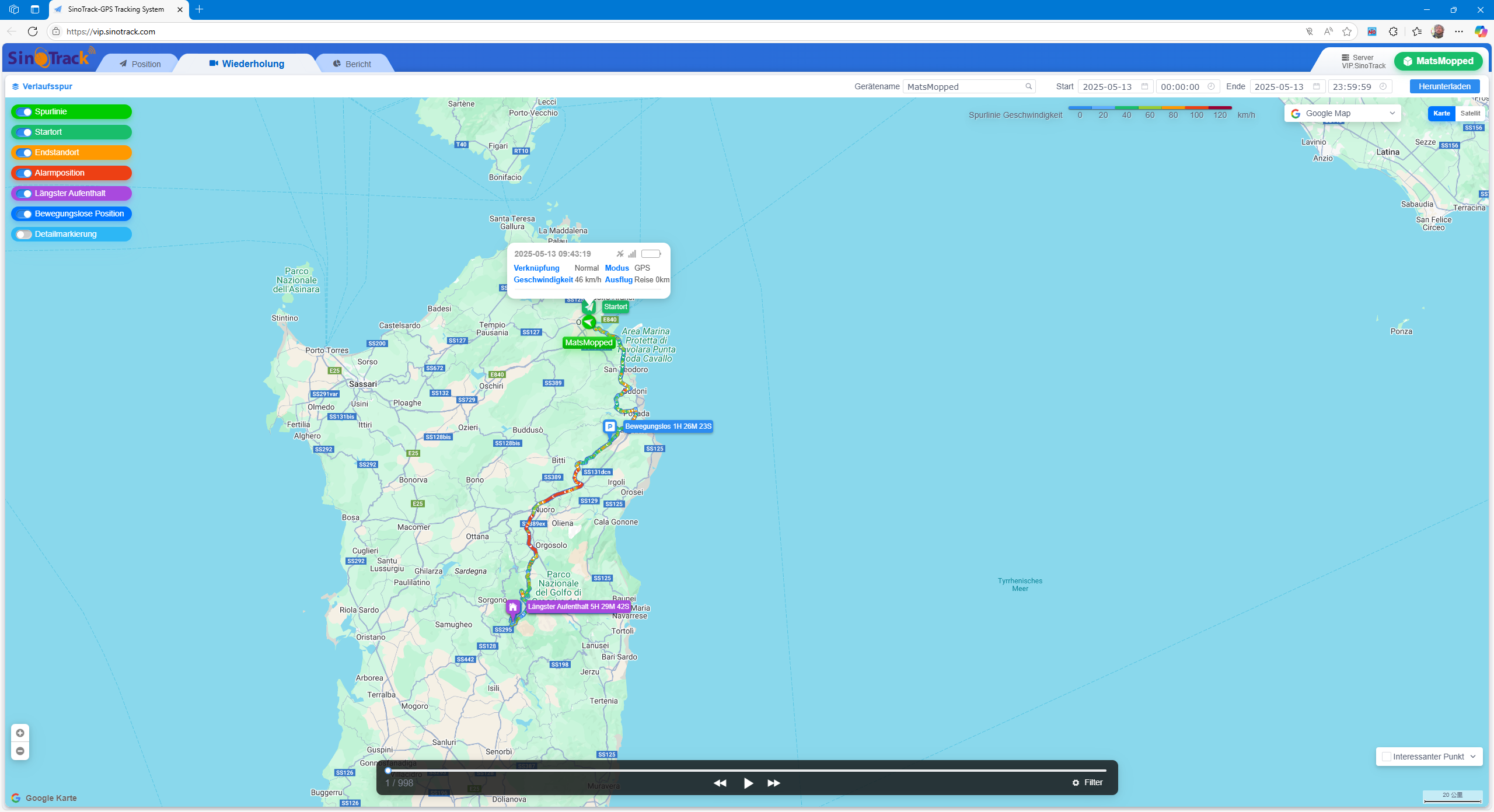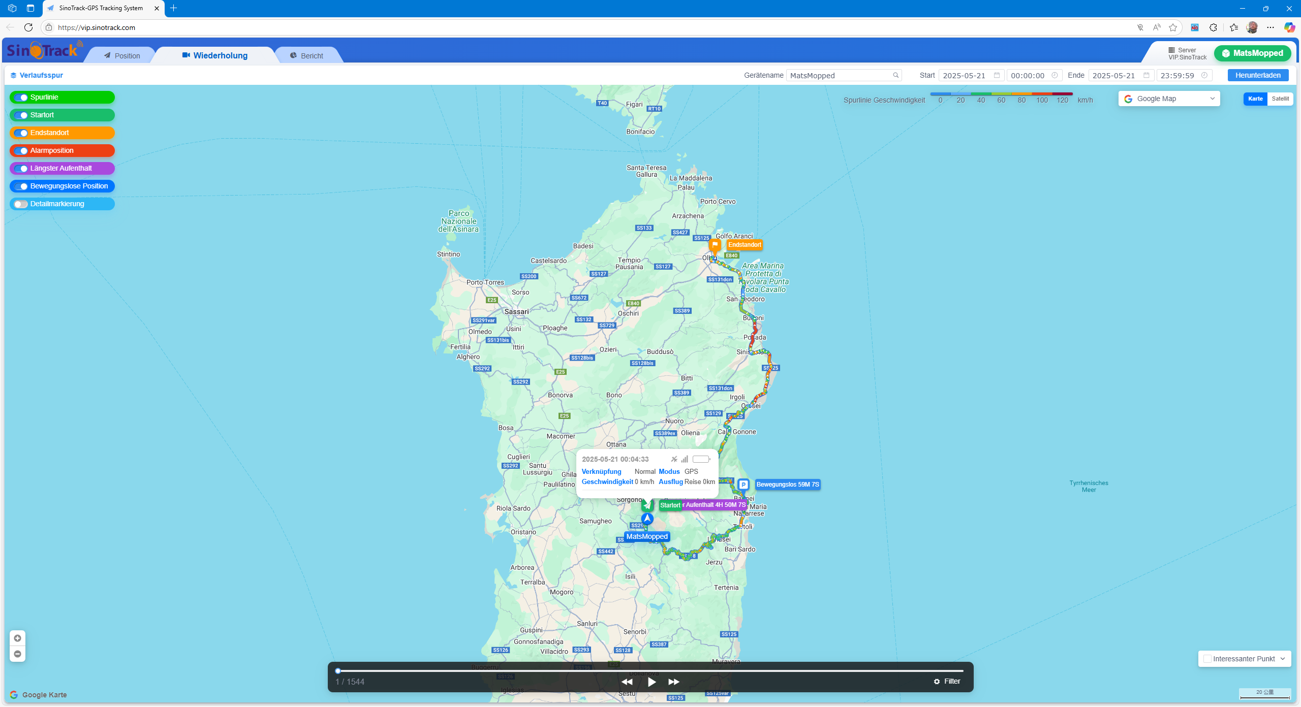 Rückfahrt Fähre: von Olbia nach Genova am Mittwoch 21-05-2025 um 21:00 Uhr