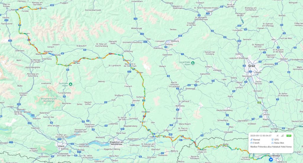 Kurz vor Maribor fahre ich mal wieder in die falsche Richtung und wir drehen wieder um, was aber dazu führt, dass wir an einem Cleanpark nicht vorbeikommen und unseren treuen Motorräder eine Reinigung gönnen. Mit den sauberen Maschinen fahren wir und dann die letzten paar Kilometer zu unserem Hotel, in Maribor, direkt an der Skipiste.